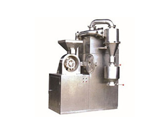 本機組主機、輔機、集管道、電控器定量加料裝置為一組。輔機有旋風(fēng)和脈沖式除塵器、主機內(nèi)裝有離心分級裝置,除可完成粉碎外,還具有分級功能,分選式離心剪切,無篩無網(wǎng),粉狀顆??扇我庹{(diào)節(jié),物料粉碎后,采用負(fù)壓輸送至排閥出口,達到制品要求,該機組是制藥、食品、化工工業(yè)的理想機械。